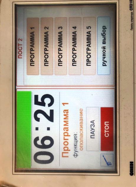 Пульт управления выполнен из нерж. стали. Габариты 300x270x200 установлен на пьедестали, Оснащен панелью оператора для выбора программ мойки. моечные головки включается не зависимо друг от друга. 5 программ с разными интервалами в зависимости от размера емкости и в зависимости от использования моющего средства 1 или моющего средства 2 или моющего средства 1 и 2 с возможностью менять временные интервалы при введение пароля администратора
