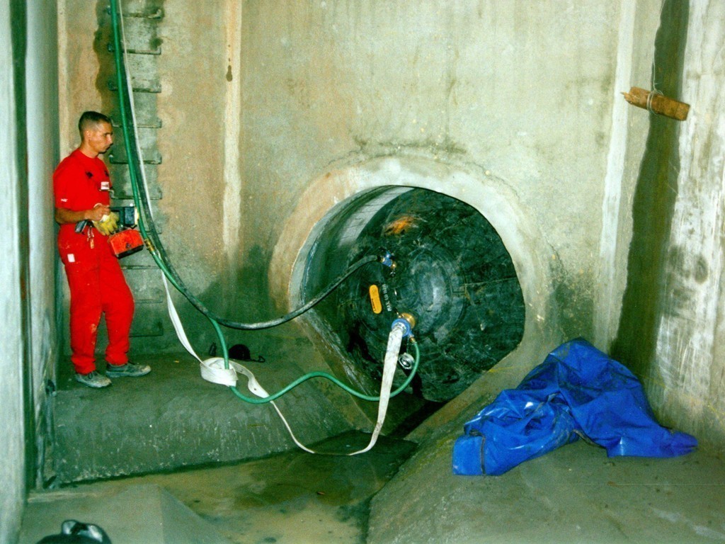 - даже диаметр пробки 2800 мм. складывается до небольшого размера и может быть без проблем помещена в коллектор через стандартный люк 625 мм